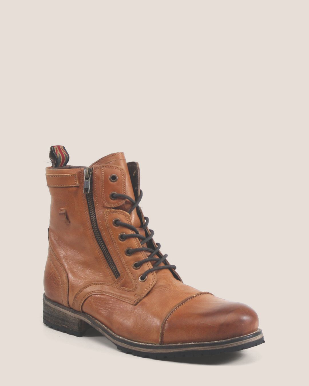 The Testosterone Shoes POOL SIDE boot is the ideal combination of utility and casually cool. Featuring a rounded toe, contrast stitching, a lace up vamp and interesting side zip detail, this boot will quickly become a favorite in your shoe collection. Fit: True to Size FINAL SALE: This item is final sale. NO Returns, Refunds, or Exchanges.