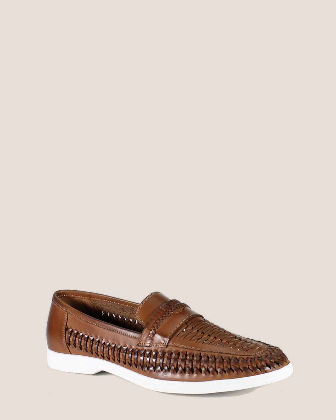 Combining the timeless charm of a men's huarache loafer with the sporty flair of a white-bottomed athletic sneaker sole, this genuine leather shoe effortlessly blends style and versatility, ensuring you're ready to embark on any adventure that comes your way.